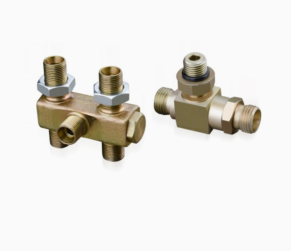 液壓中央回轉(zhuǎn)接頭是挖掘機(jī)、起重機(jī)、高空作業(yè)車、盾構(gòu)機(jī)、旋挖機(jī)、平地機(jī)、海上作業(yè)平臺等液壓系統(tǒng)中的關(guān)鍵零部件,其作用是連接整個液壓系統(tǒng)中固定與旋轉(zhuǎn)部分的液壓管路,使系統(tǒng)液壓管路上下兩部分具有相對回轉(zhuǎn)運動360度而不發(fā)生干擾。液壓中央回轉(zhuǎn)接頭按國際標(biāo)準(zhǔn)生產(chǎn),已得到卡特彼勒等主要工程機(jī)械廠商認(rèn)可。